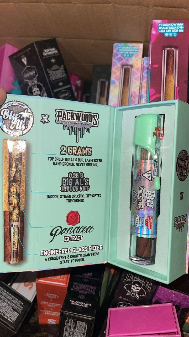 Our original Packwoods blunts are filled with two grams of lab-tested, hand broken, a premium flower with high potency concentrate, dusted in kief, rolled up in a 100% tobacco-free wrap with an engineered glass filter.